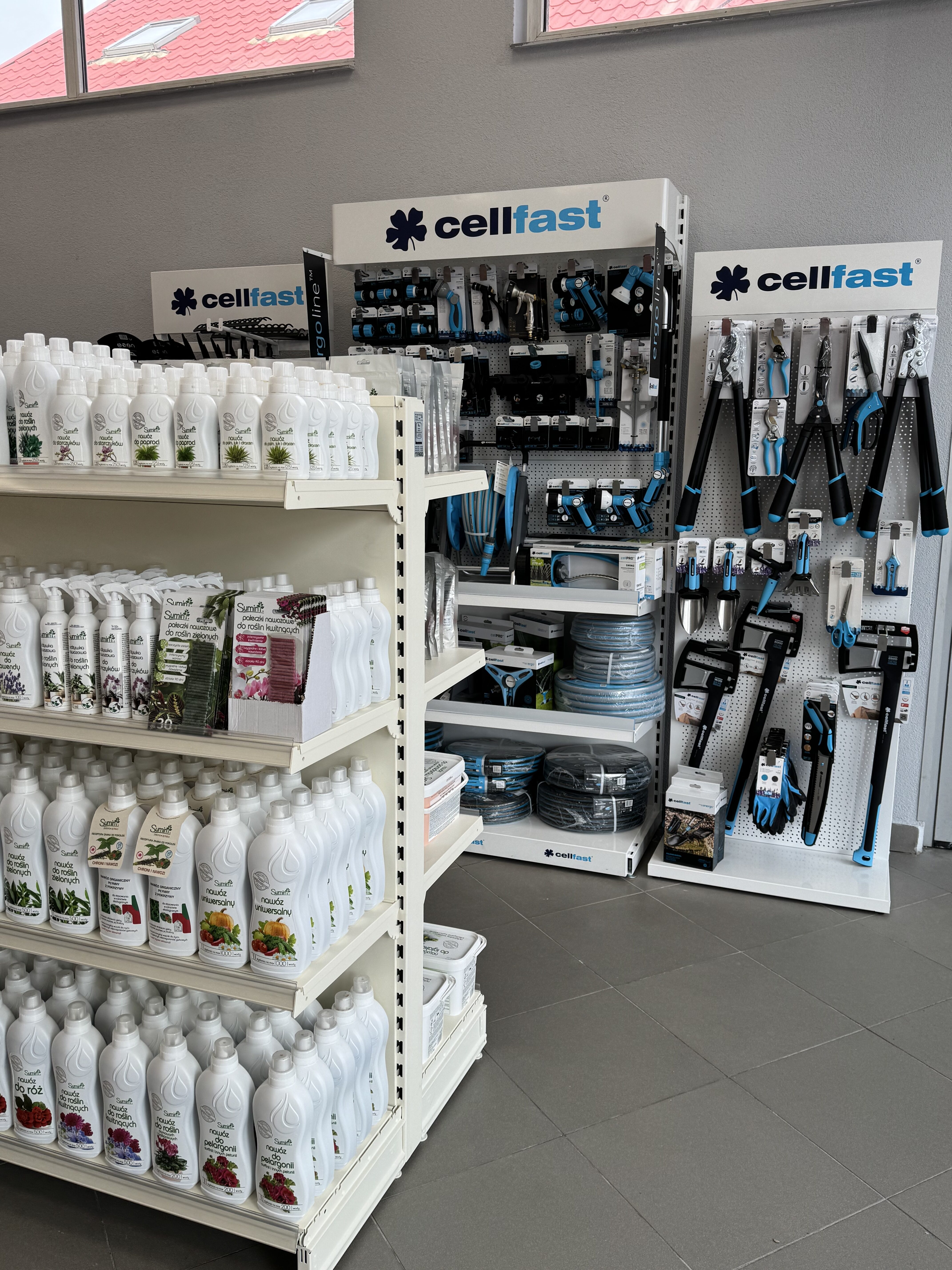 - Węże, złączki, konewki, doniczki i drobne akcesoria - wszystko, co potrzebne do codziennej pracy w ogrodzie.